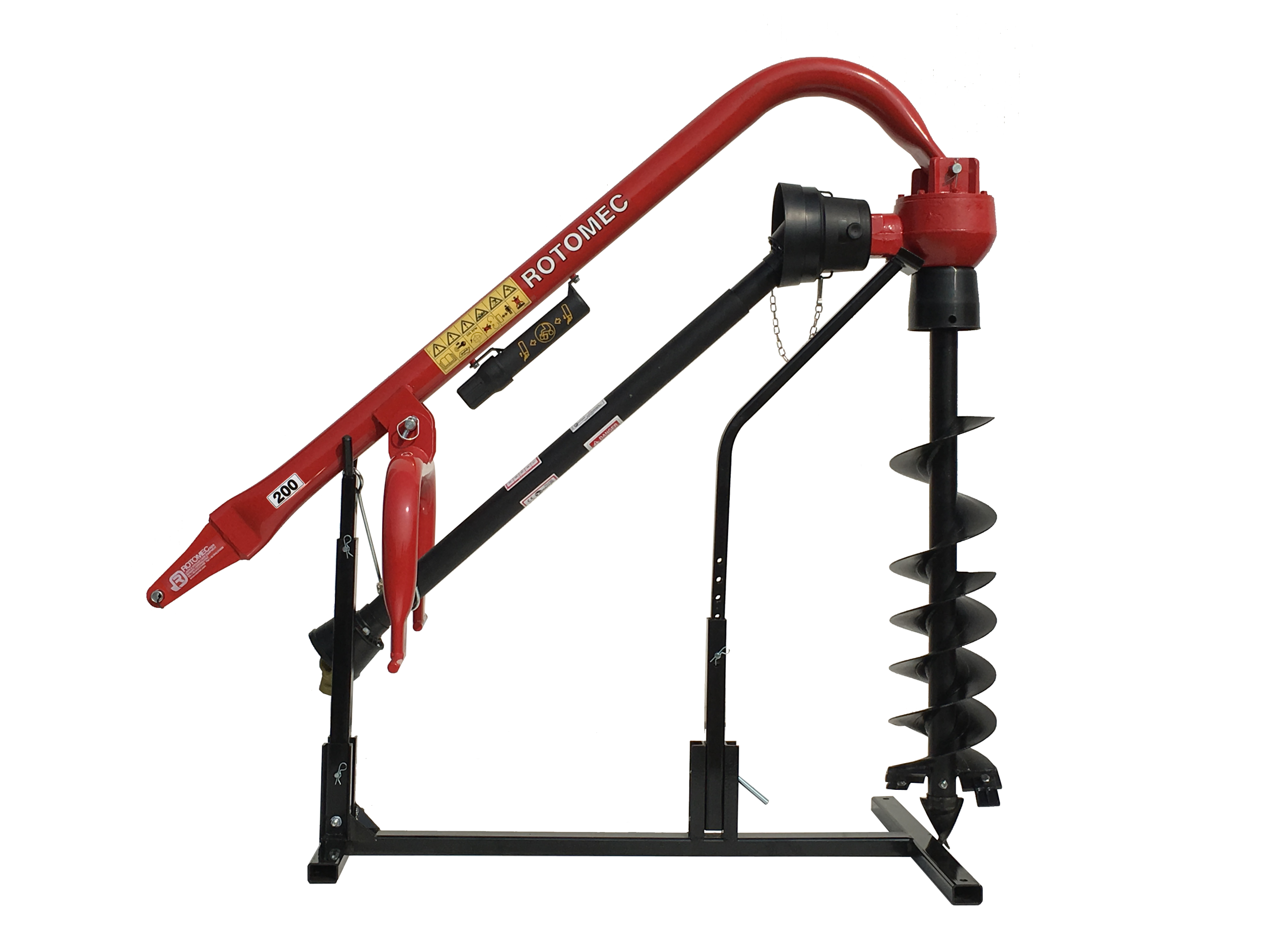 The Post hole diggers are simple but sturdy machines useful for planting trees, vineyard poles, light poles and fences. Two models are available: the 200-512 for tractors ranging from 18 to 40 HP and the 300-512 for tractors ranging from 18 to 50 HP. They are equipped with a solid frame made of reinforced tubes and a heavy duty gearbox to ensure great reliability under any working condition. The augers are available in diameters of 15, 23, 30, 46 and 61 cm and all sizes, except for the smaller one, are equipped with double flighting. The flighting is fully welded and the augers also feature a welded reinforcement collar where they are secured to the gearbox. Knives and points are replaceable.