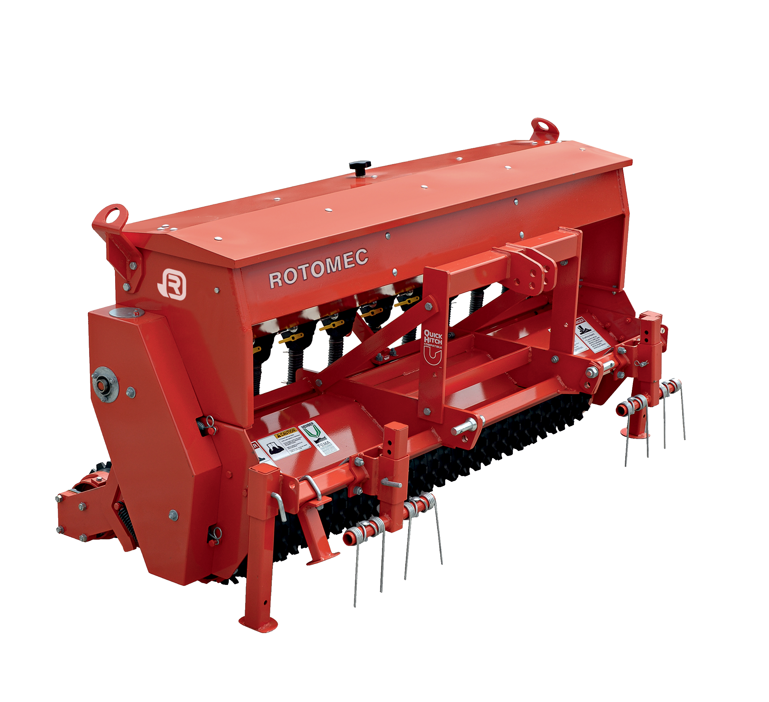 The Seed-Rite is a primary full-width seed broadcaster ideal for seeding a wide variety of grasses in lawns, golf courses, parks, sports fields and hay fields. Seeds are precisely metered and placed at the ideal depth for proper seed germination. The 29 cm diameter front corrugated roller, equipped with 28 rings, evens out the surface and prepares the seed bed while the 24 cm diameter rear corrugated roller equipped with 29 rings, helps incorporate the seed into the ground and gently applies pressure through the 2 side springs to compact the surface after the seed has been placed. The light weight and durable nylon/fiberglass composite roller rings which are supplied standard with the Seed-Rite also help contain the overall weight of the machine making it easier to use with the lower horsepower tractors. Cast iron roller rings are available as an option and are ideal when more pressure on the soil is needed.