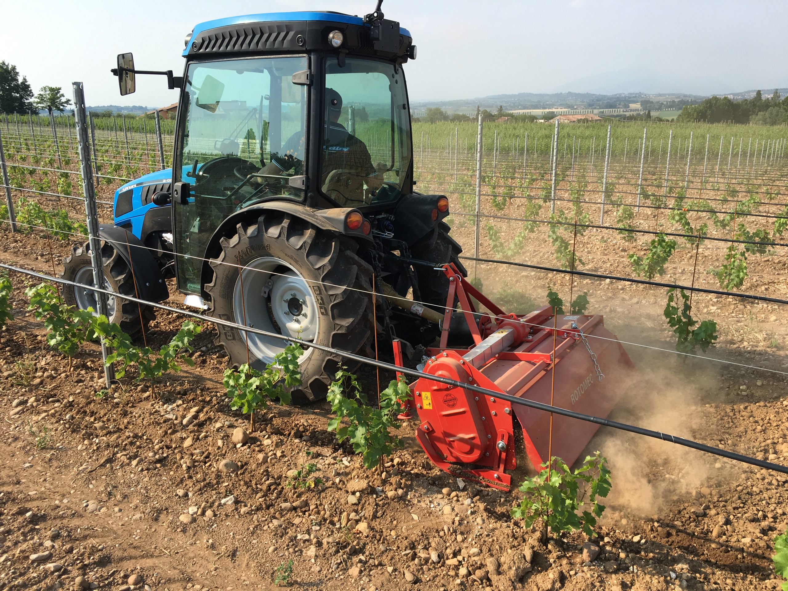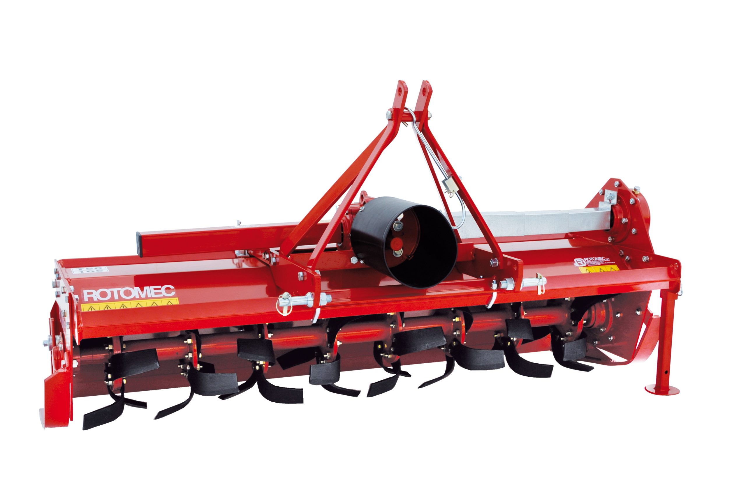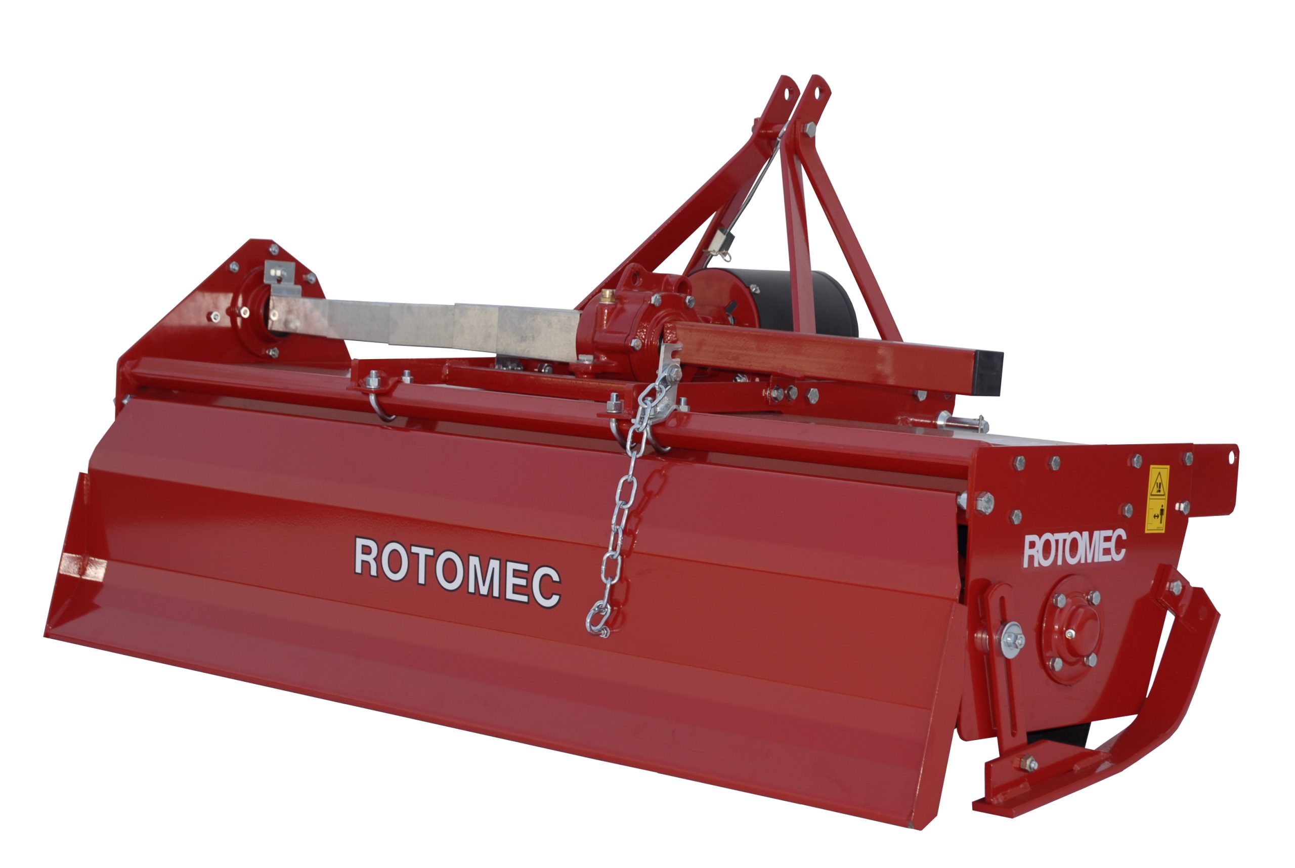 Rotomec tillers feature a built-in manual side shift system that allows operator to either keep the tiller center mounted behind the tractor, like a traditional unit, or offset the tiller to the right of the tractor. This is particularly beneficial when trying to till over the right tractor tire and closer to obstacles.