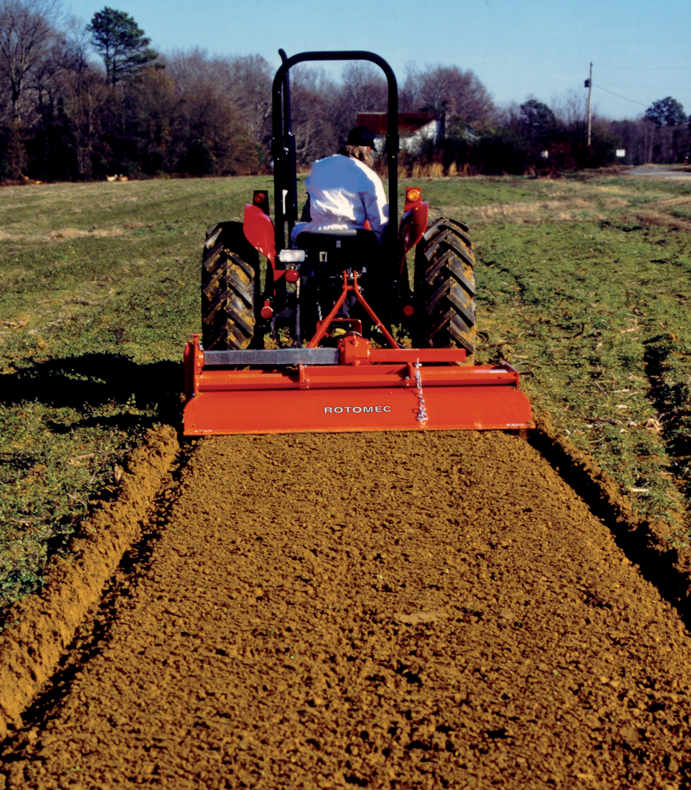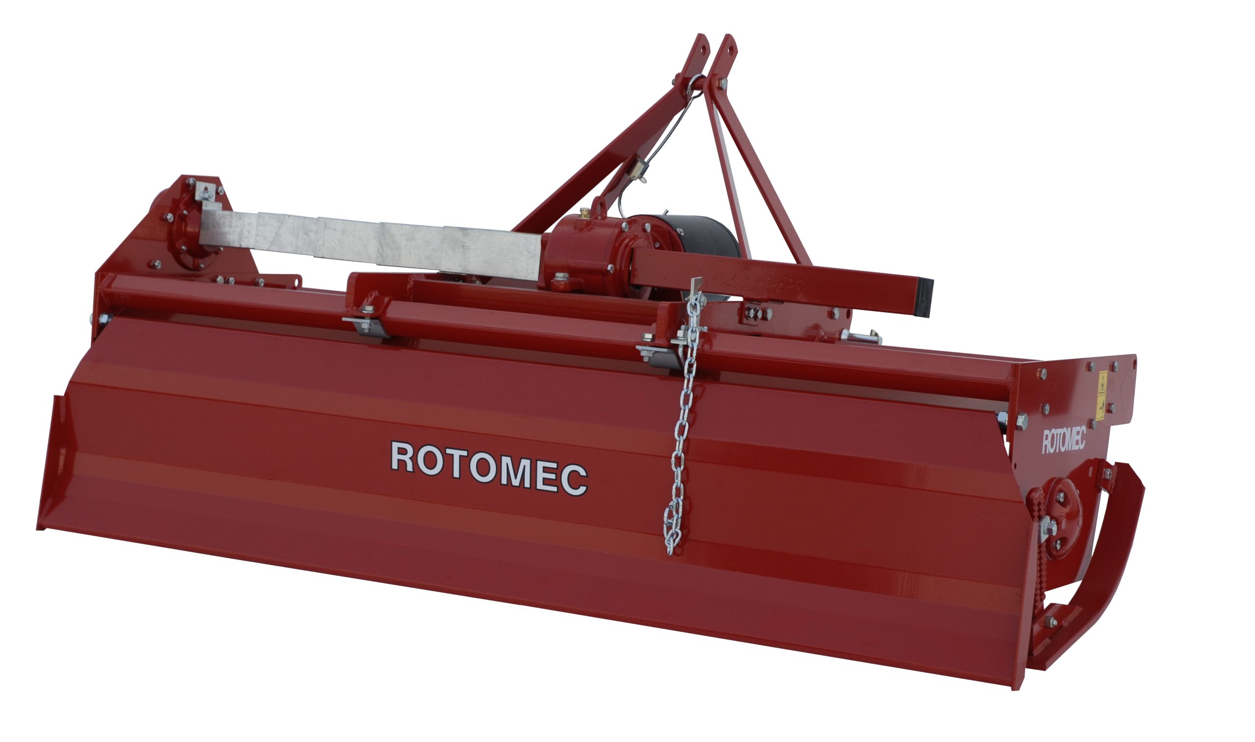 Rotomec tillers feature a built-in manual side shift system that allows operator to either keep the tiller center mounted behind the tractor, like a traditional unit, or offset the tiller to the right of the tractor. This is particularly beneficial when trying to till over the right tractor tire and closer to obstacles.